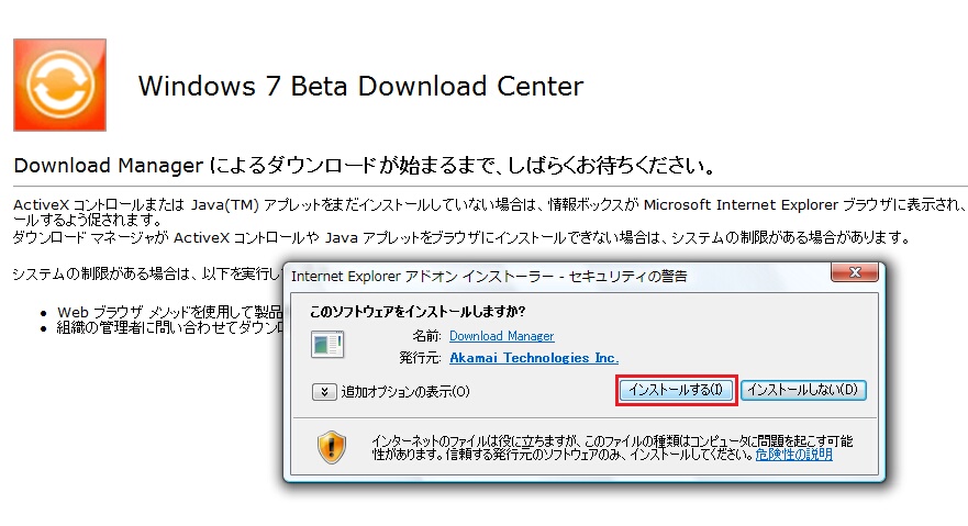 マイクロソフトのサイトからWindows 7本体をダウンロードします。