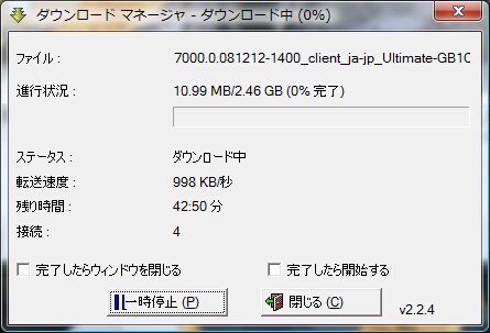 ちなみに、接続:4とあるのが同時にダウンロードしている証と言えます。