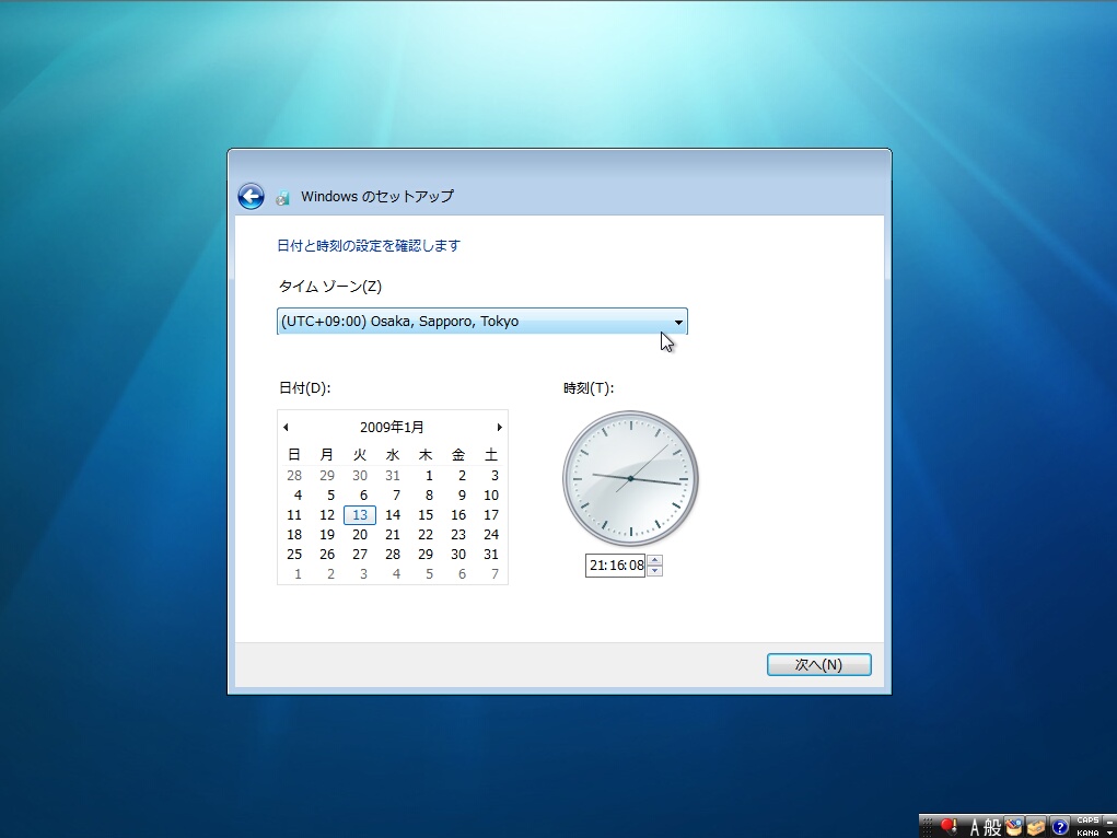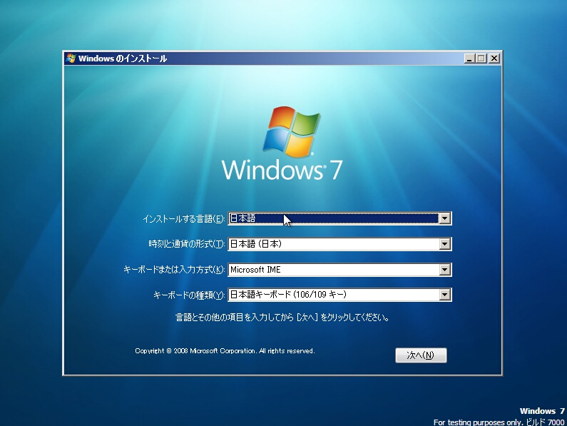Windows Vistaの時と同じように言語などを設定するページが表示されます。