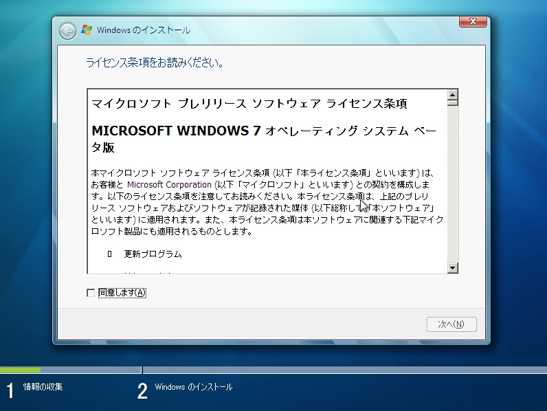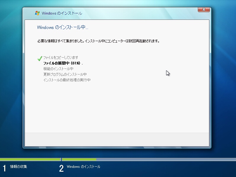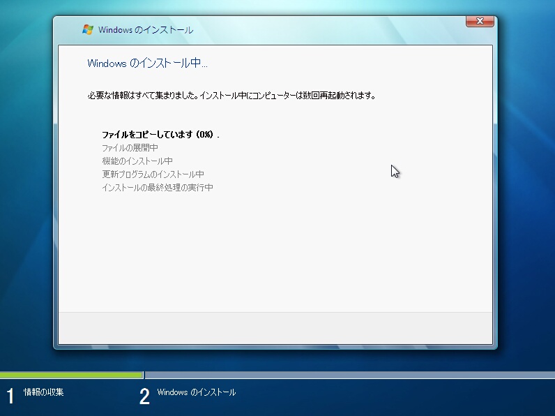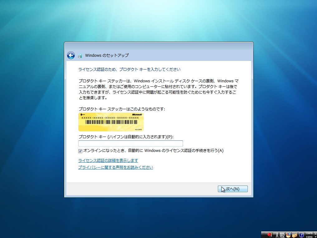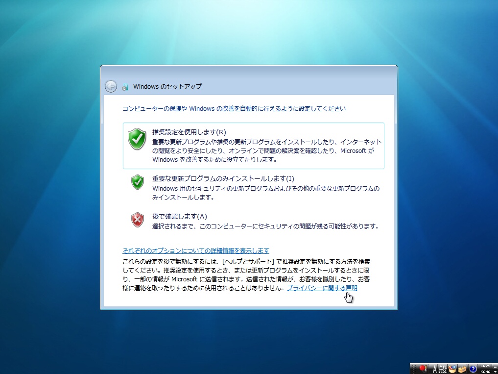 Windows 7のセットアップのバックは終始これと付き合うことになります。