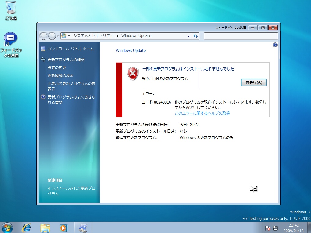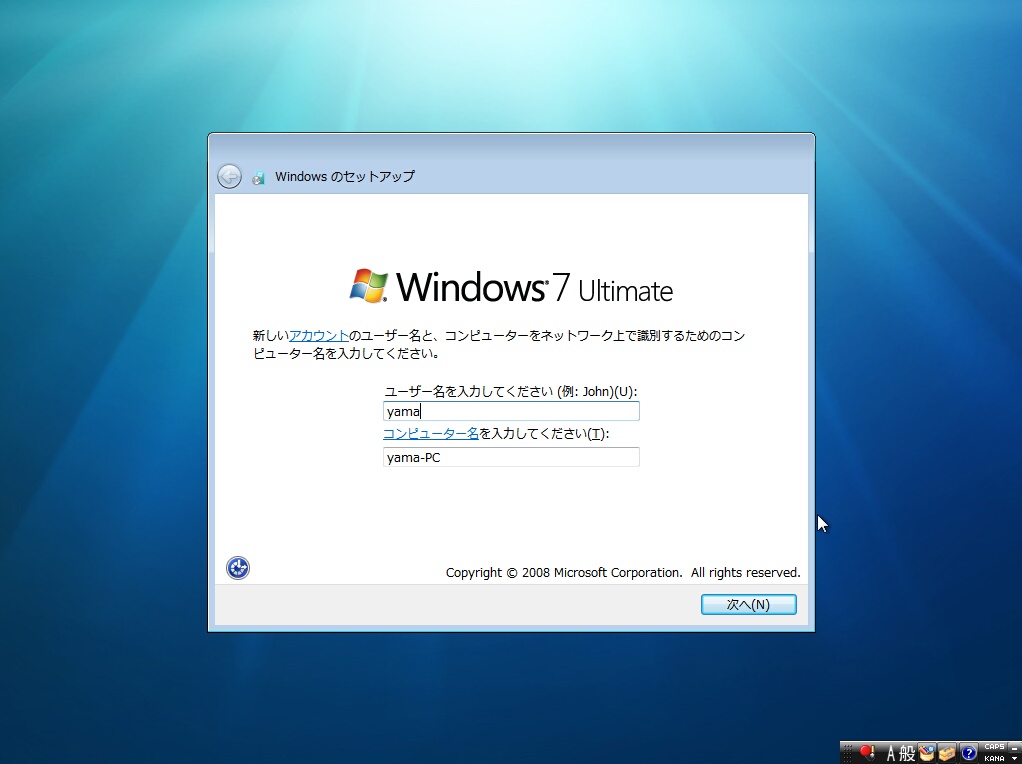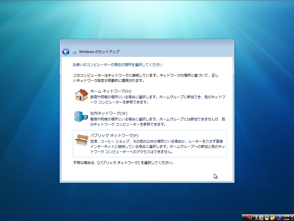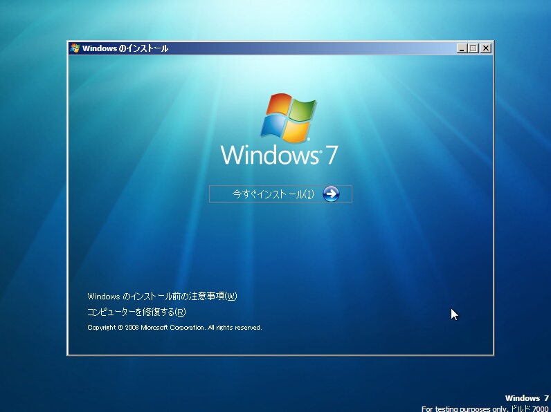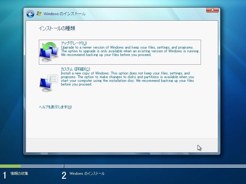 Windows 7のセットアップのバックは終始これと付き合うことになります。