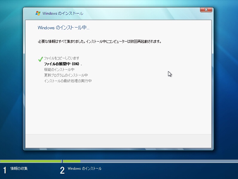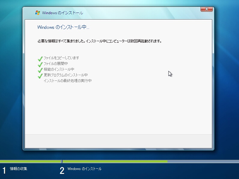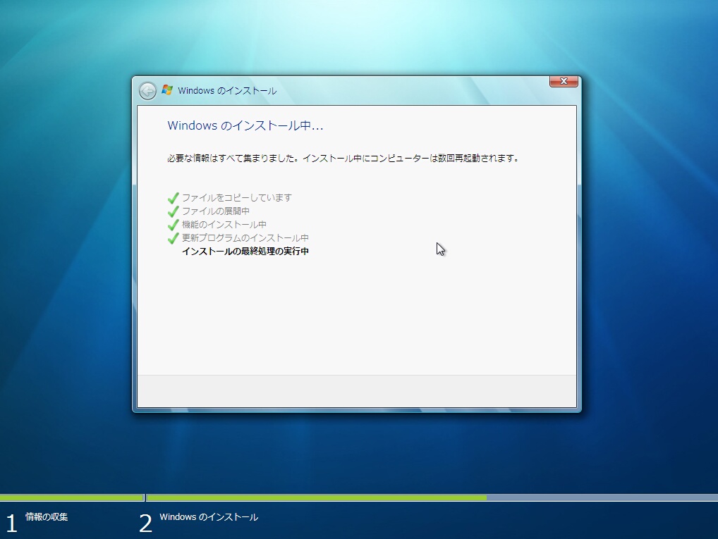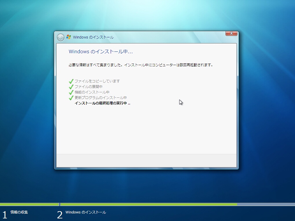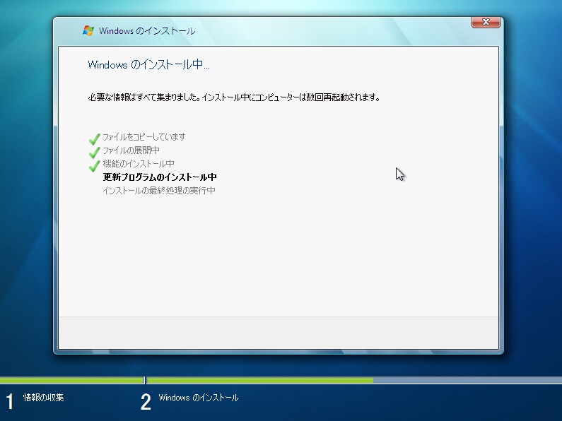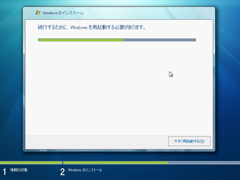 ※インストール画面中の再起動の回数は2回です。
