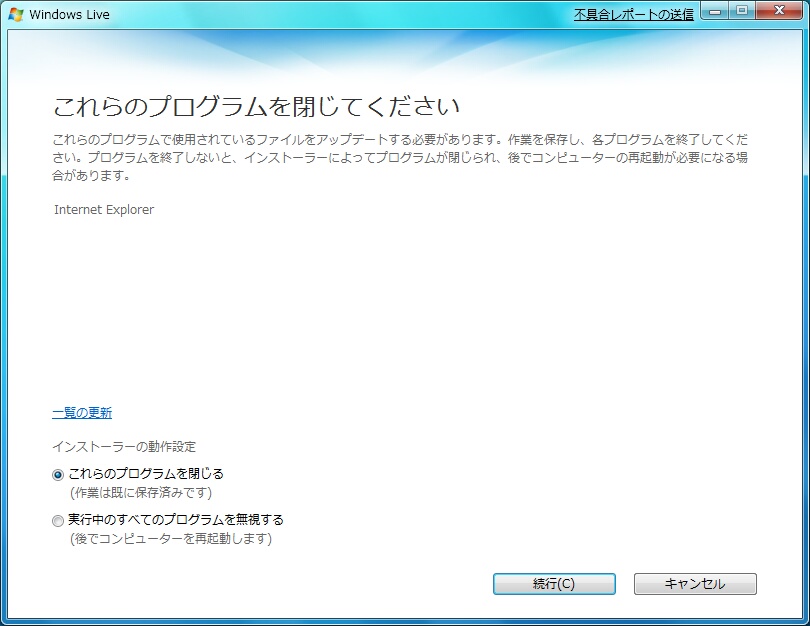 「完了したらウィンドウを閉じる」はご自由にどうぞ。