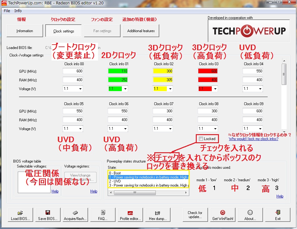 他のOS・PCでもクロック設定が保持される =再起動してもクロック設定は保持される ※グラボを売る時には 元のBIOSに書き換えておくこと |