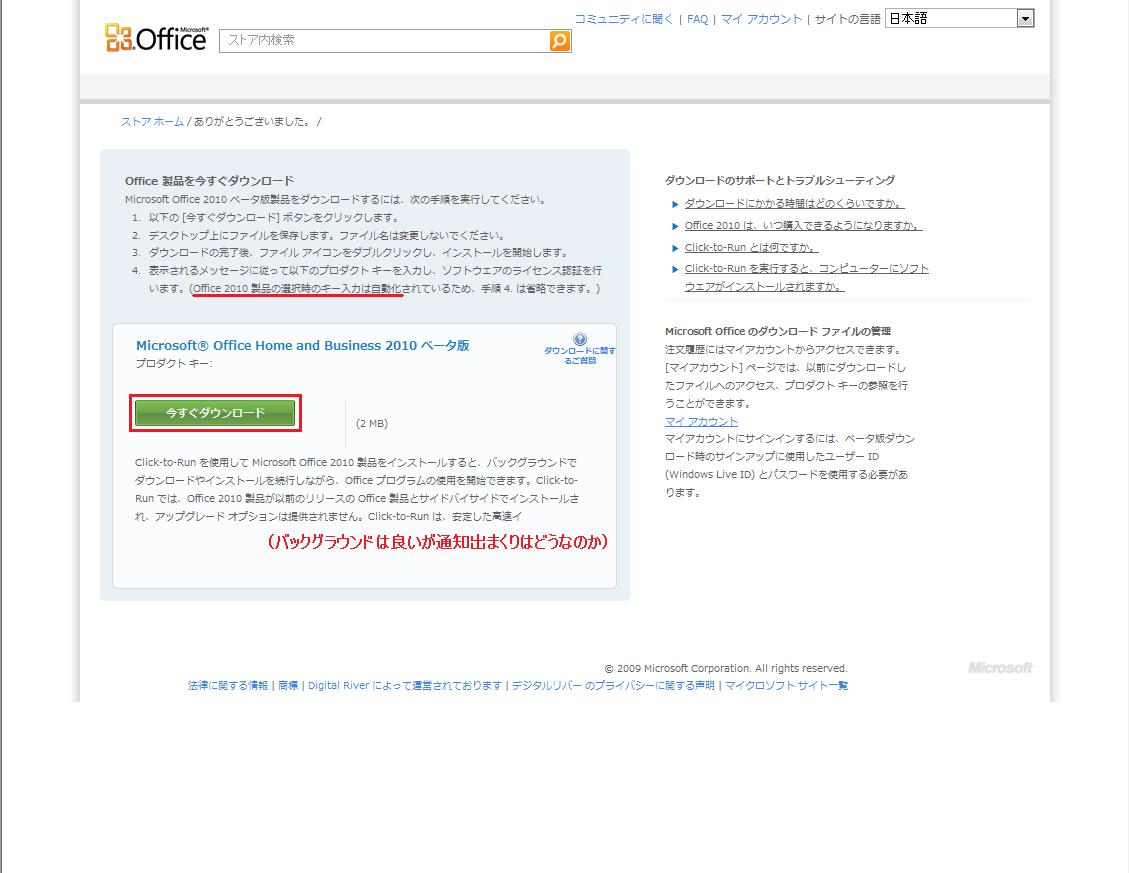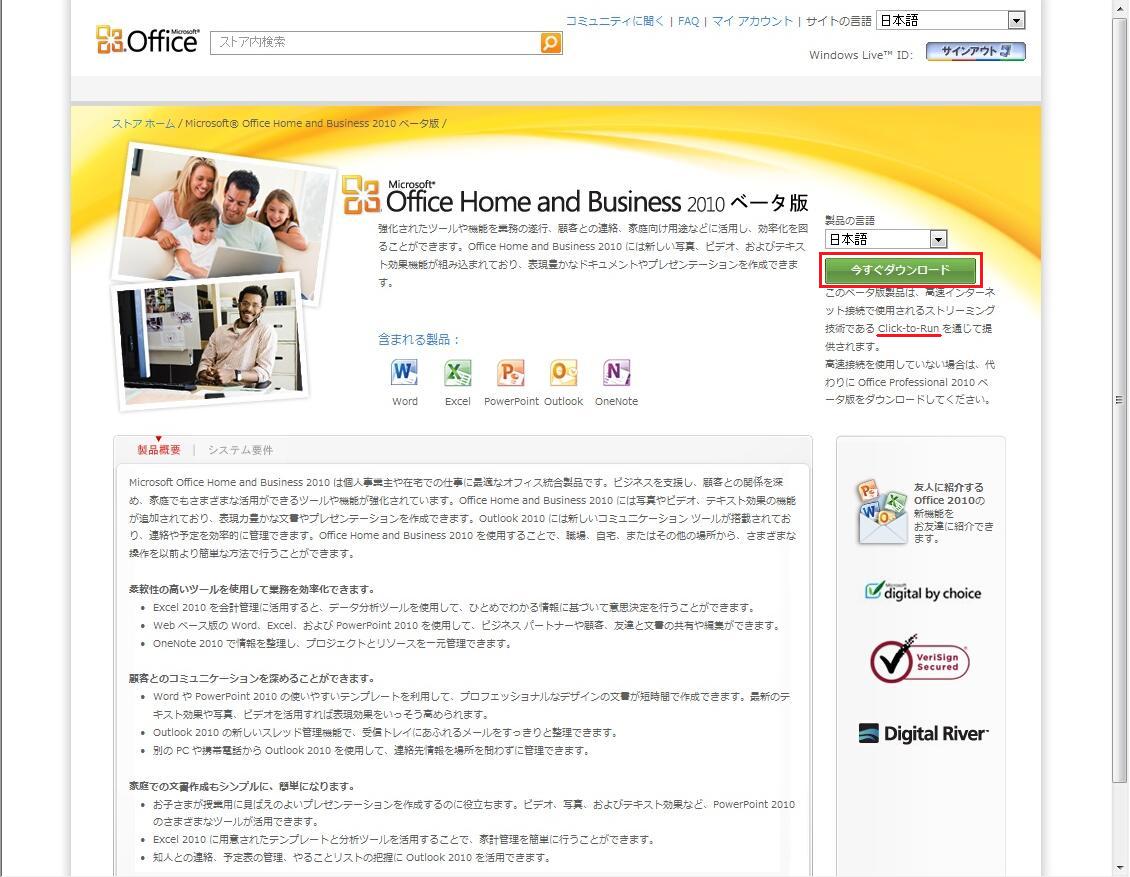 エディションを選択してLive IDでログインするとこのようなページが表示されます。