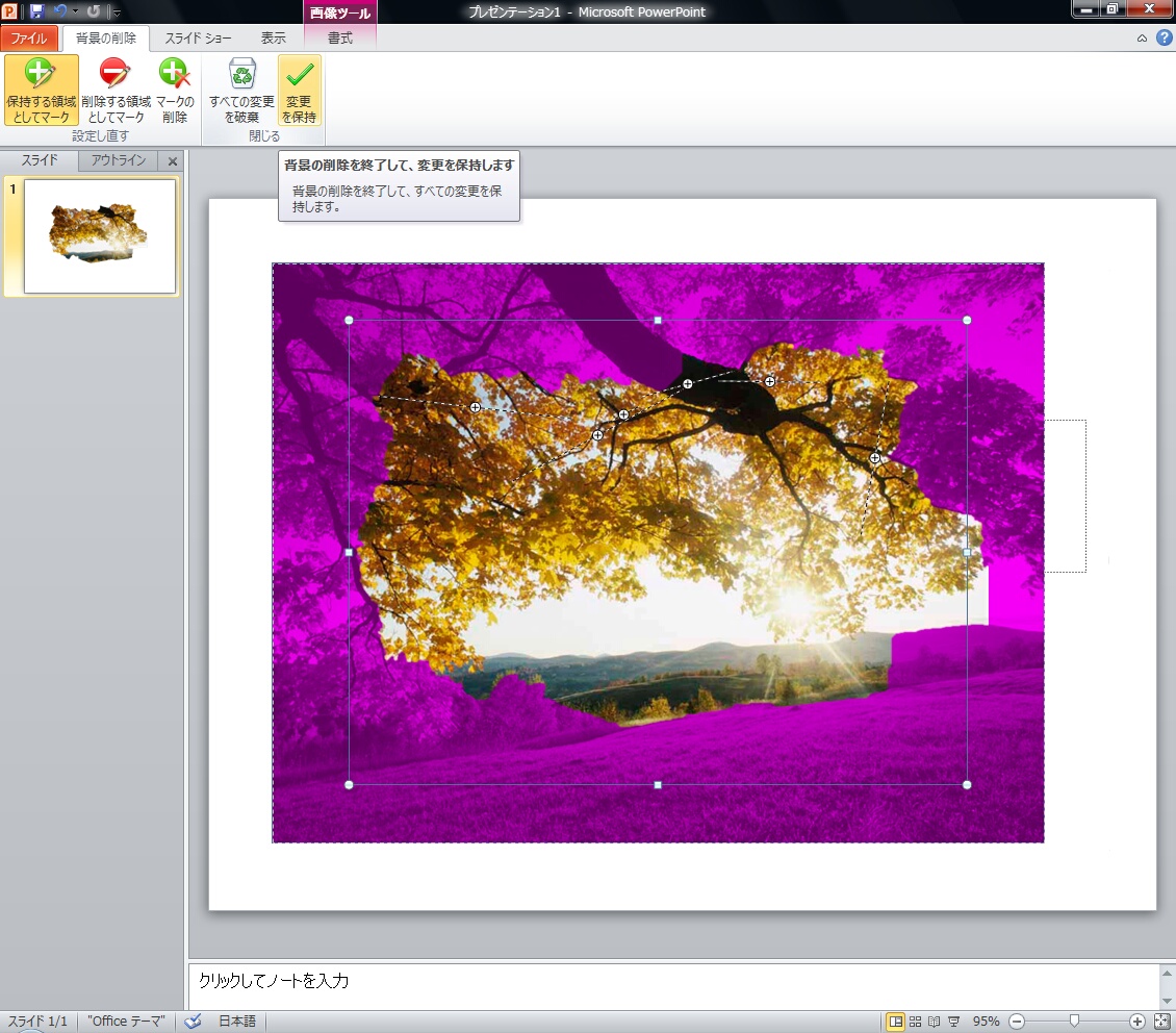 行われていますが、「背景の削除」機能についてはPowerPointにしか搭載されていないので、