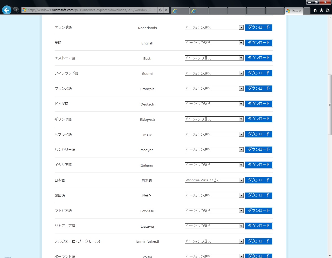 その言語の必要なWindowsバージョンを選択して、「ダウンロード」をクリック。
