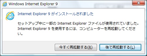 再起動ダイアログが表示されますので、どちらかを選択します。