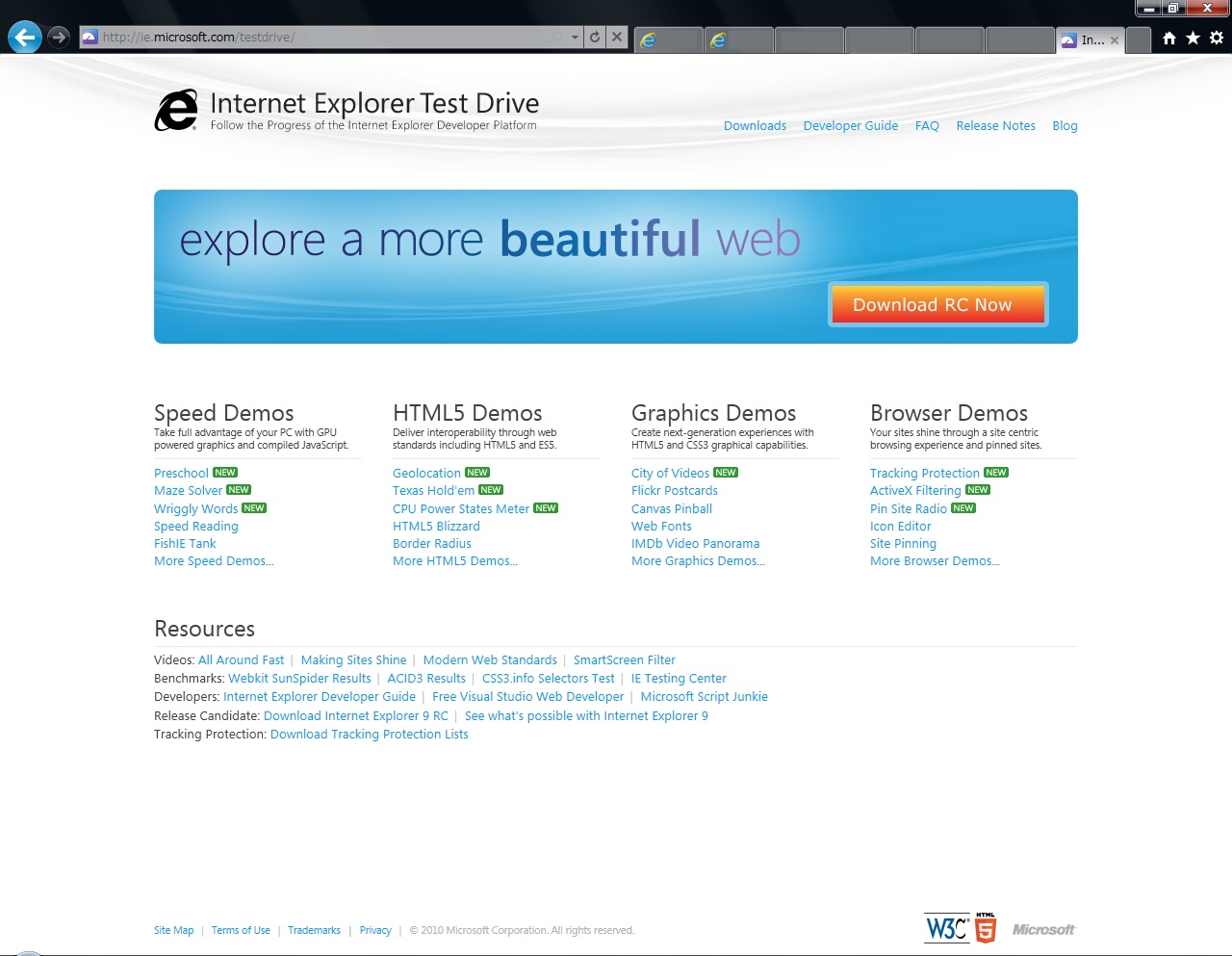 今までは次期ブラウザの開発に2年近くかかっていましたが、今回のIE9はわずか半年(beta版:2010/9~)で製品版までこぎ着けました。