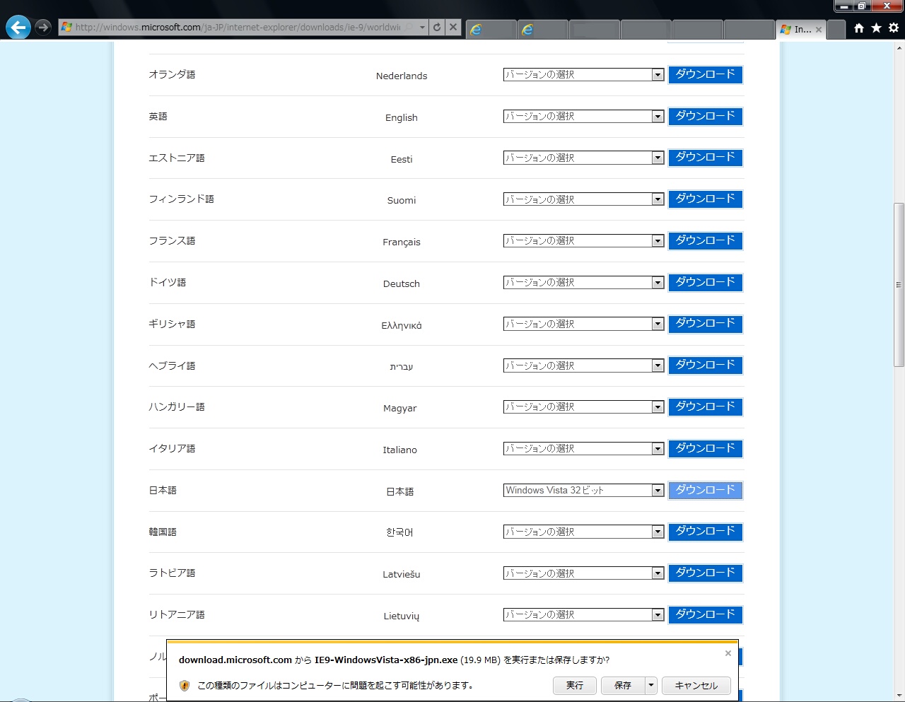 IE9はおそらくこのパソコン上では最後のIEとなります。