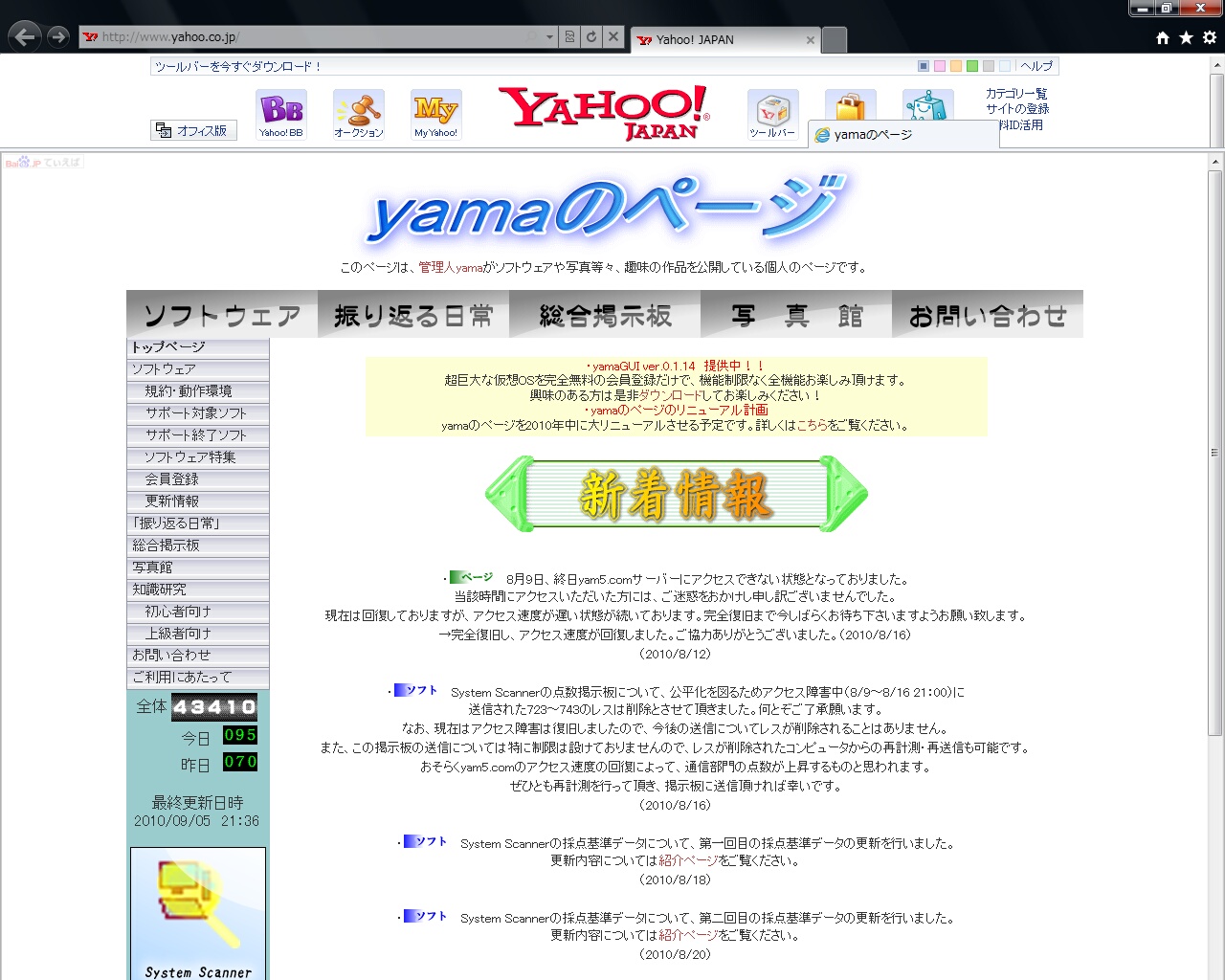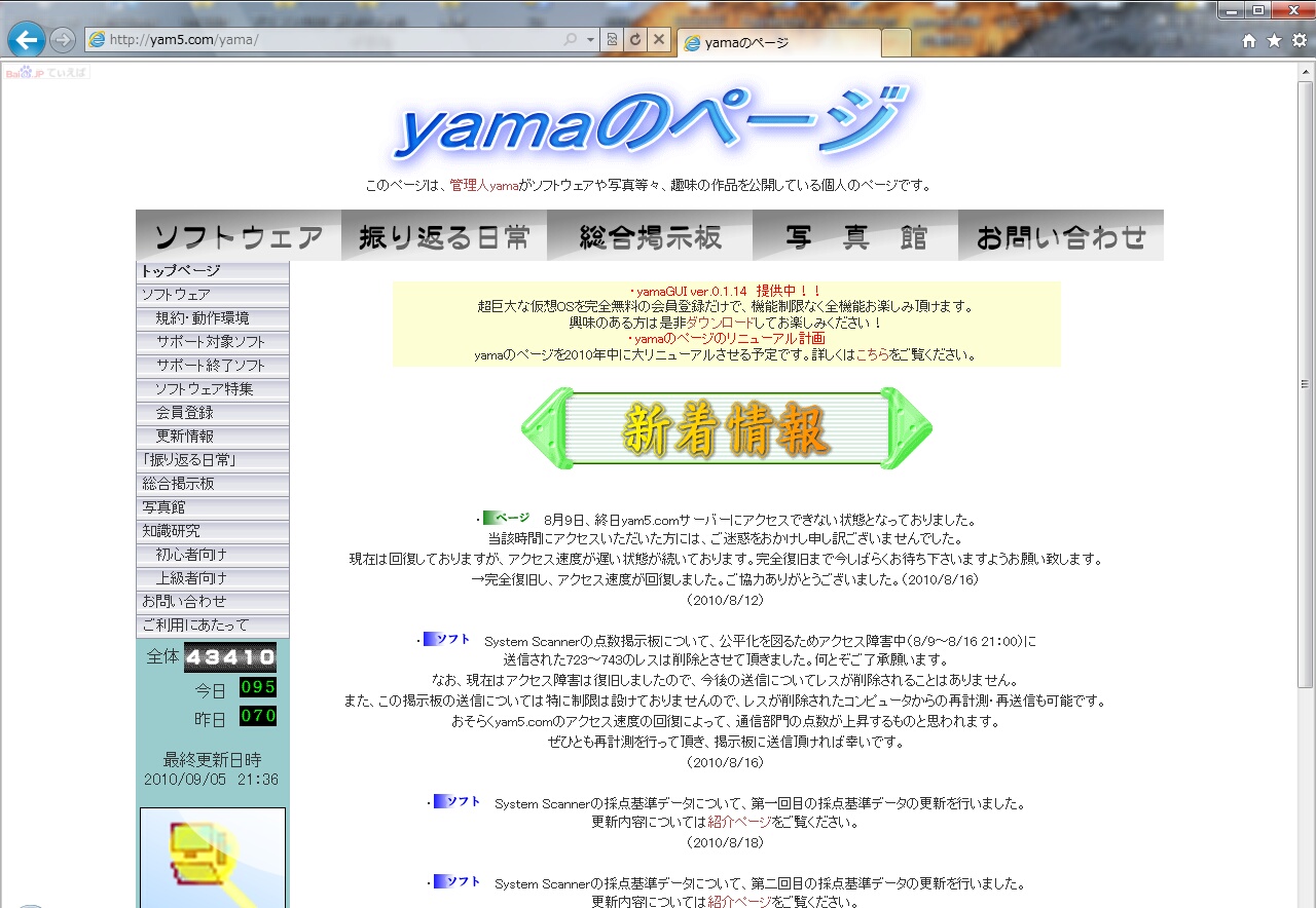 一方、yamaのページ関連やソフトウェアについては、2010年に大改造を成し遂げ、