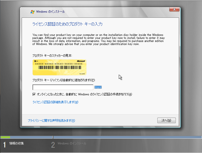 (一応、Vistaとインストーラはほぼ同じなので、