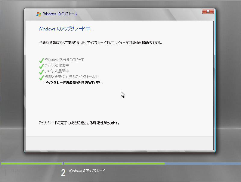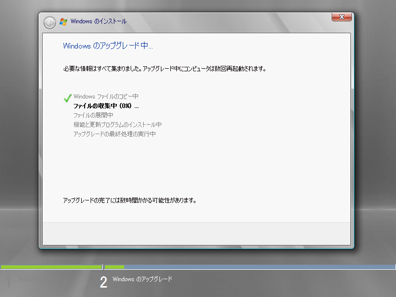 この画面でも、少し処理が行われますが、数分で終了します。