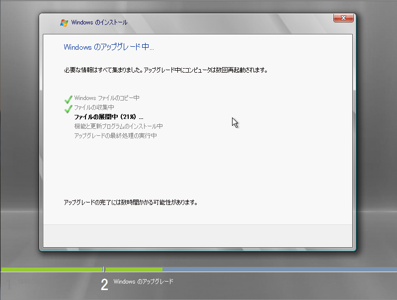 ファイルの移動などでさらに時間がかかります。)