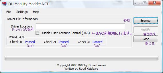 このアプリケーションは、ドライバのファイルを書き換えて、