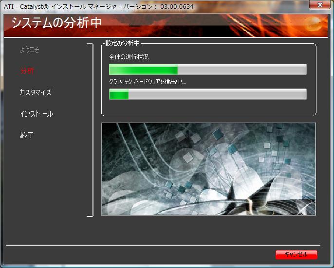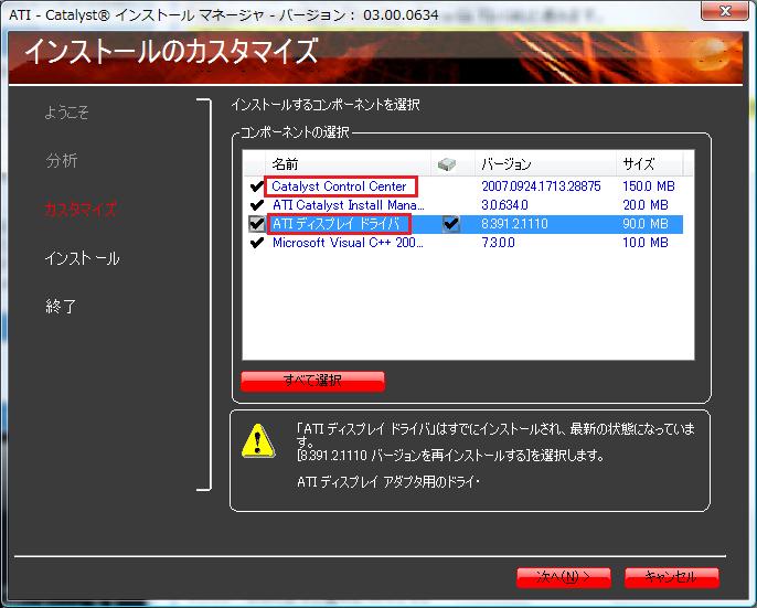 ATIのホームページからドライバをダウンロードし、インストールが完了。