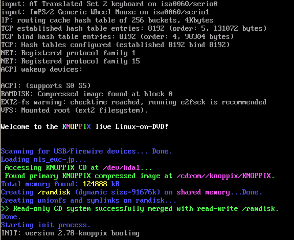 KNOPPIXは便利なことに、そのマシンに合わせた構成を自動で読み込み、