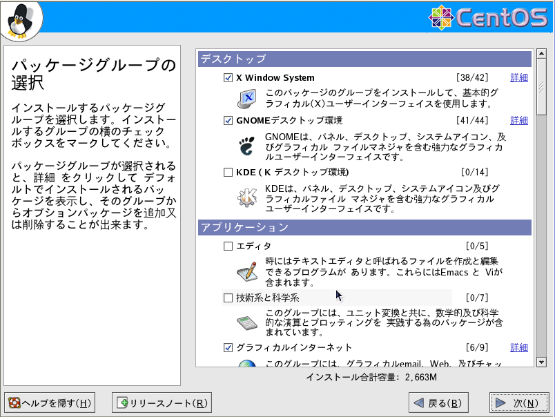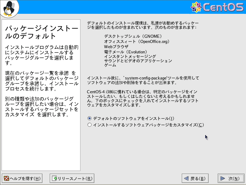 インストールパッケージがデフォルトの場合、