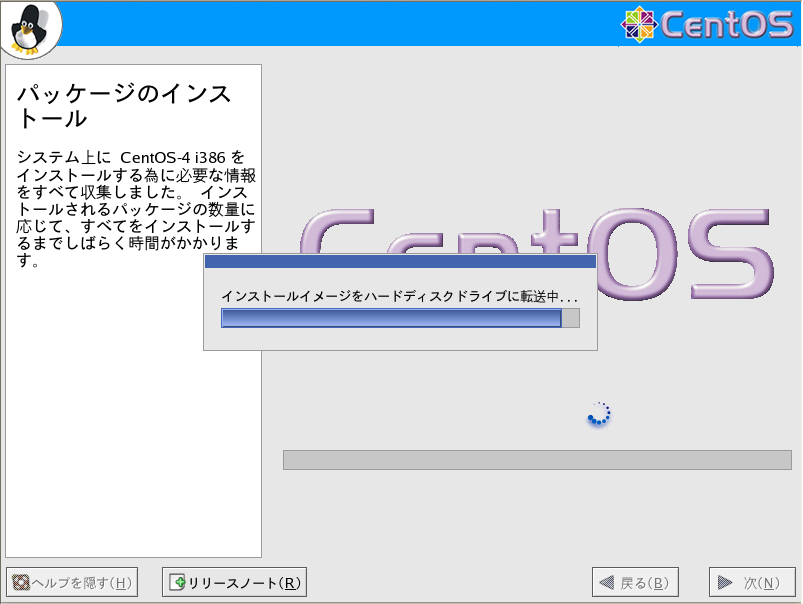 ↑インストールイメージをハードディスクドライブに転送中です。
