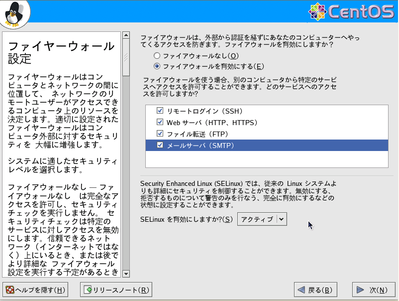 SELinuxはアクティブにしておいて、次に進みます。