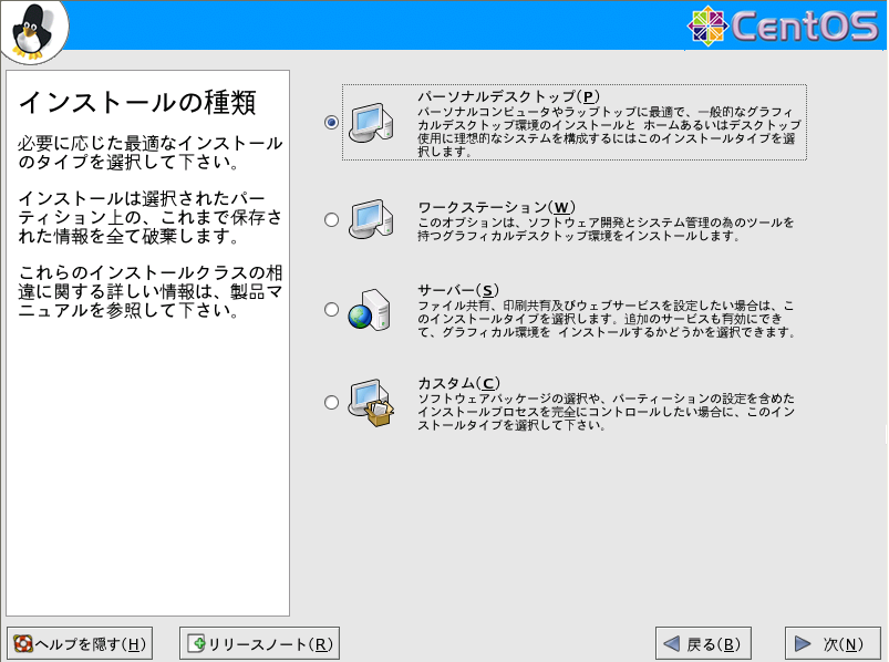 ↑インストールの種類は何にするかと聞いてきます。