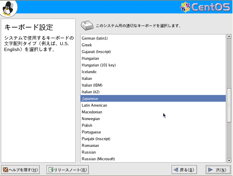 ↑システムで使用するキーボード言語設定はどれにするかと聞いてきます。普通の日本人ならJapaneseを探して選択してください。