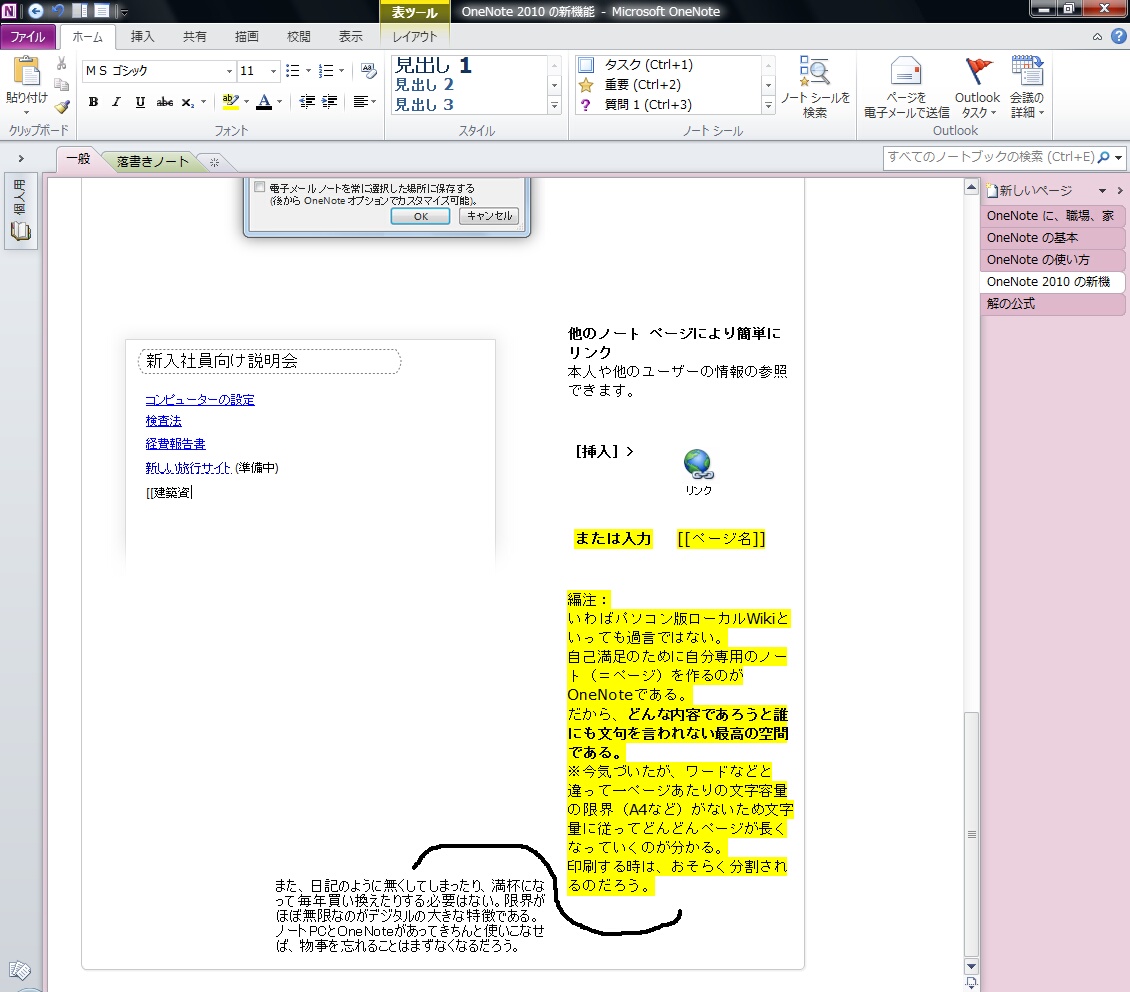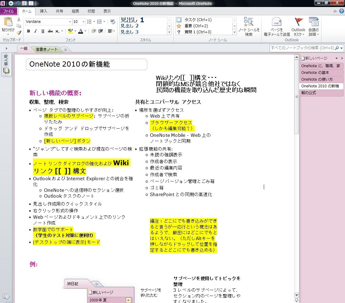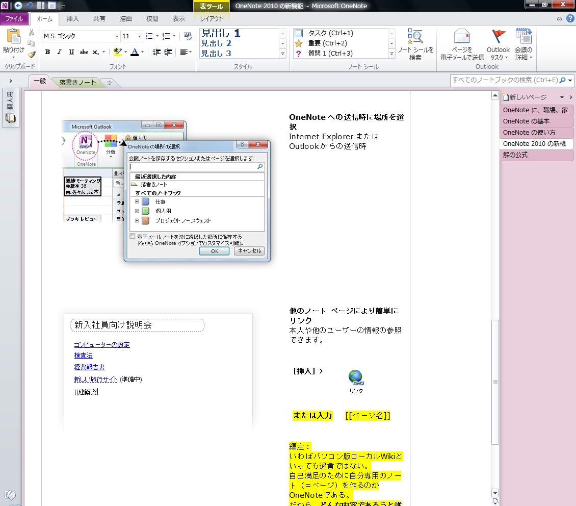 OneNote2010ではその敷居を低くし、Wikiのリンク文法を搭載するなど、より身近にし、