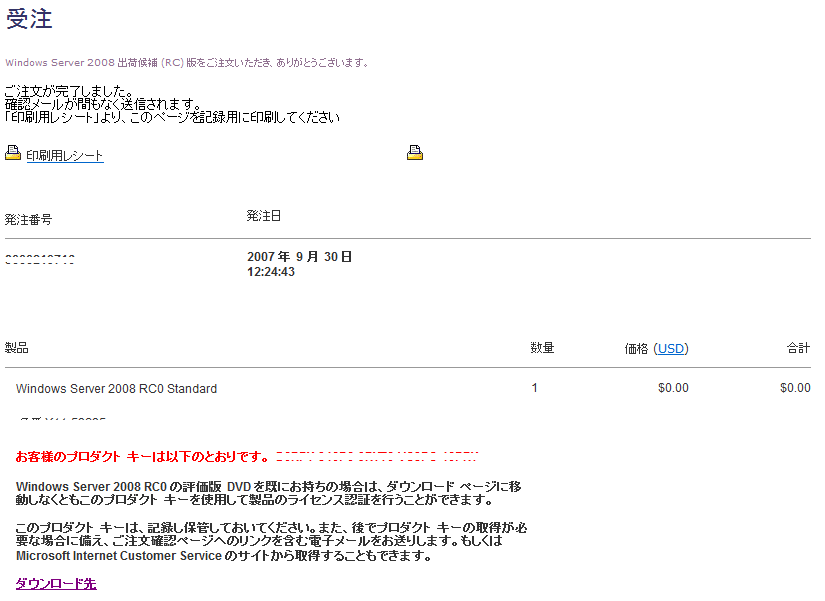このページには、プロダクトキーなど重要な情報が書いてあるので、
